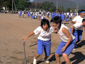 「ねー先生、障害物競走どうやったら勝てる?」 と指示を仰いでいるところ、らしい。やけに真剣ね(笑) |