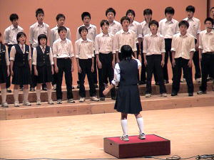 | これは2学年全体の合唱の時。よく声が響いていました | 次に3学年全体の合唱です。 |