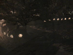 | す〜ぱ〜豪雪のお陰でホテルの庭に大きな壁が出来ました。 せっかくなので、キャンドルでライトアップ。 お客様の夕食に時間に合わせて、18時に点灯。 とっても素敵なディナータイムになりました。 2/5(土)に八方尾根では火祭りが開催されます。 |