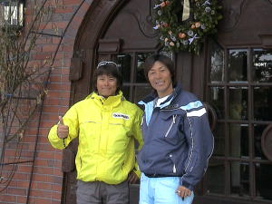 | 昨日からスキーテストの撮影で、白樺ゲレンデにお越しの竹節一夫デモと伊東兄弟で有名な伊東秀朗さんです。 撮影の間、車を停めさせて欲しいのですが、とのこと。 もちろんおっけーよ! 断るわけないじゃないですかー、こんなにかっこいいのにぃ〜。 竹節デモは志賀高原出身で、慎吾さんの焼額のスクールでもセッション中。 そして我が家は、毎年竹節農園のおりんごを注文させていただいています。 竹節さんちのりんご、すっごくおいしいんですよ〜。 今まで食べた中で間違いなく一番美味しい、ベストワン。 自信を持ってお勧めします。 伊東さん、初めてお会いしたのですが、めっちゃかっこいいですねー。 明日も撮影に来て欲しいくらい! |