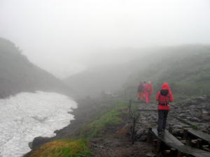 | 2007年7月16日 台風がそれてくれたモノの、曇りがちでスカッとしないお天気。 でも雨の心配が無くなり、唐松岳を目指しました! 5時発で黒菱から登ります。 ということで、前夜は夕食後に華ちゃんのお母さんが用意してくれていた花火で盛り上がり、 ちらっと呑んでみーんな早めに就寝。 朝は霧が出ていて寒々しかったですよね。 黒菱の登りもキツイ... それでも、だんだんと晴れてきて! 唐松岳登頂成功です☆ なんと10時間! 今回のNo.1は、華ちゃん!! といいつつも、途中折り返し組もいらっしゃいました。 次のツアーは、「川崎おとーさんリベンジツアー」 もしくは「熊田おかーさんバドミントン捻挫リベンジツアー」になりそうです☆ ゆーやと、なおやもまたぜひ志鷹に来てね! 登山も頑張ったし、卓球が上手になったよね! 大護と遊んでくれていつもありがとう! |