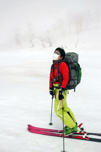 | 今回は栂池から登って金山沢へ 雲雲?? と心配していた1日でしたが、上部は雲の上だったとのこと! 写真はガイド:ホマレンジャーと熊田おとぅのコラボです 上田パイセンの写真のタイトルは「夜露死苦」だそうです(by.ホマレ)